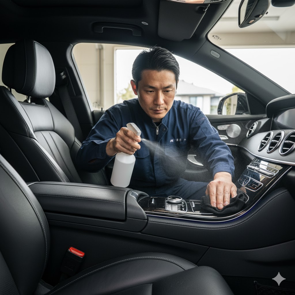 - 自然乾燥: 施工後は自然に乾燥させます。速乾性でベタつかない処方なので、すぐにサラッとした快適な車内に戻ります。
