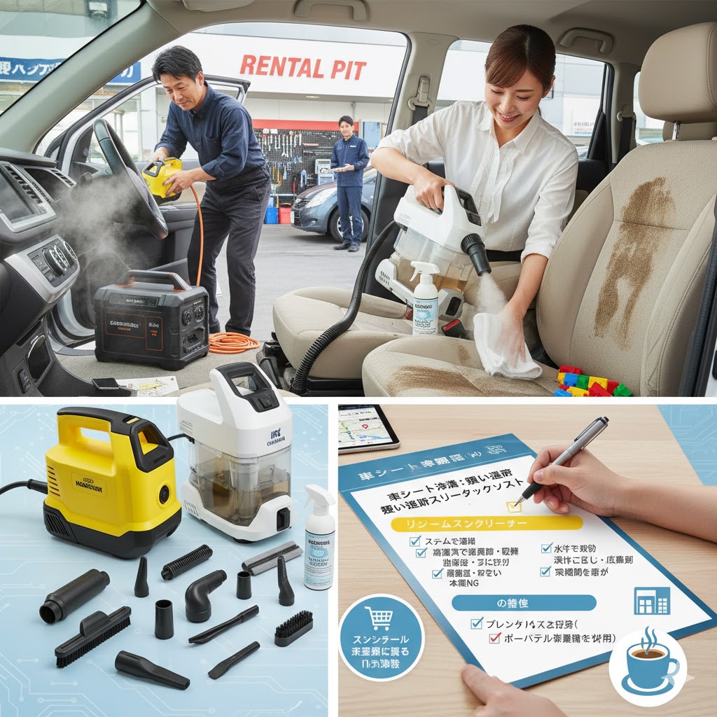 購入前に一度レンタルで試したい、あるいは電源が確保しにくい場所でも使えるコードレスタイプを探しているという声もよく聞きます。この記事では、車のシート洗浄におけるスチームクリーナーの効果的な使い方から、製品の選び方、注意点までを詳しく解説していきます。