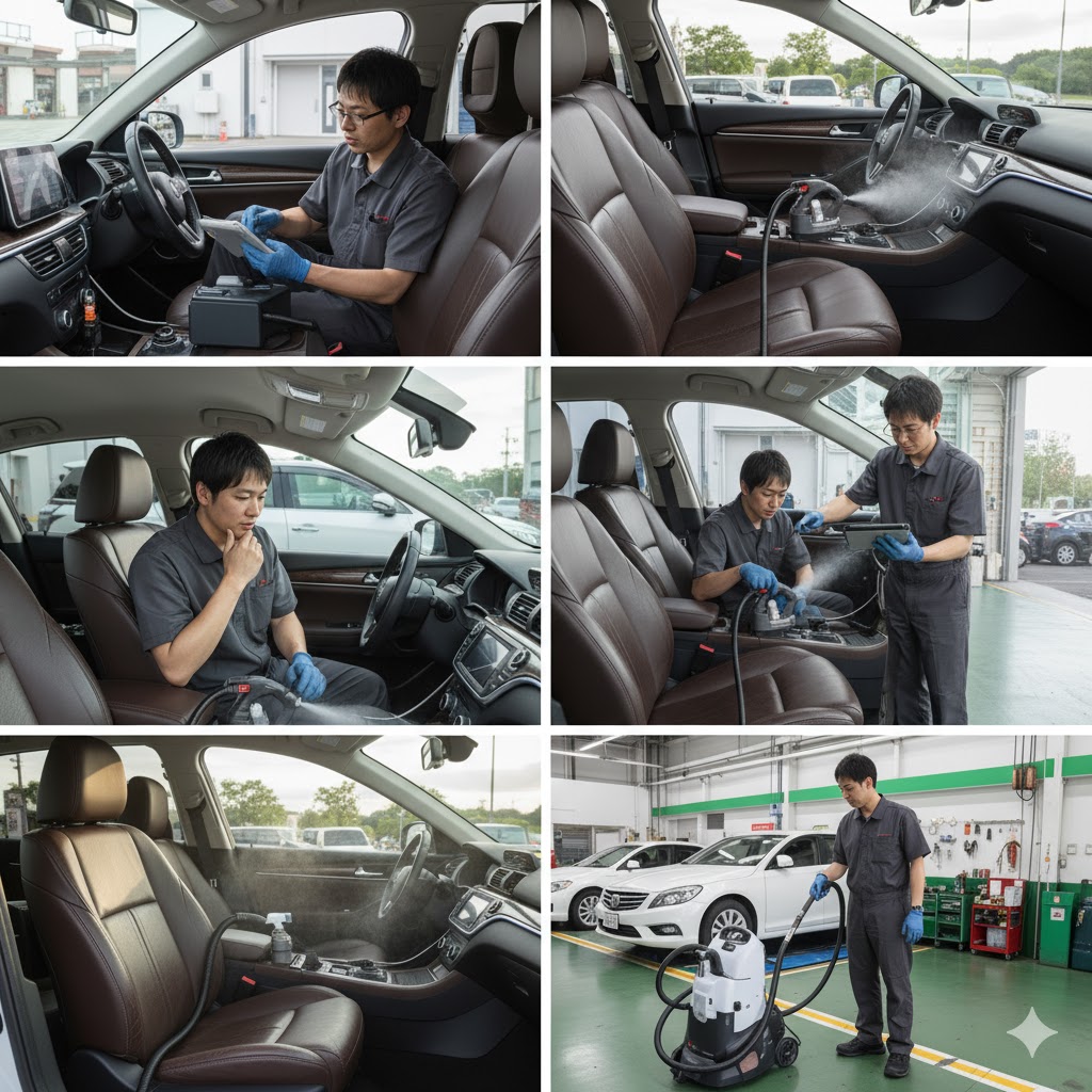最も注意が必要なのは本革シートです。高温のスチームは、本革の油分を奪ってしまい、ひび割れや変色、シミの原因となります。アルカンターラなどの高級素材も同様に、専用のクリーナーを使用すべきです。基本的には、スチームクリーナーは布製または合成皮革のシートにのみ使用できると考えてください。
